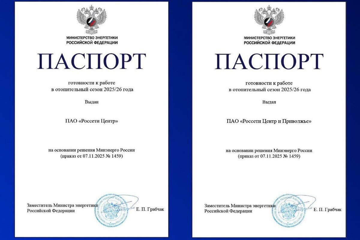 Приказом Минэнерго России подтверждена готовность компаний «Россети Центр» и «Россети Центр и Приволжье» к работе в осенне-зимний период 2025/2026 года.