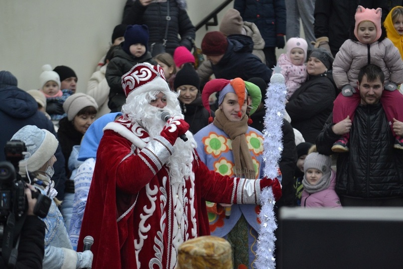 Сотни горожан пришли поприветствовать волшебника. Встреча прошла по всем традициям: с песнями, танцами, весёлыми конкурсами и хороводом вокруг сверкающей елки. Концертную программу подготовили творческие коллективы городского Центра культуры и отдыха.